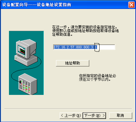 選擇UDP通訊協議時三處紅色框之處都要注意,第一處同樣要選確認,理由同上,第二處和第三處沒有確定的值,一般建議最好使用700以后的端口。這里要強調的是當我們選擇設備時,設置設備地址時地址中的端口值要與此圖一致,如下圖