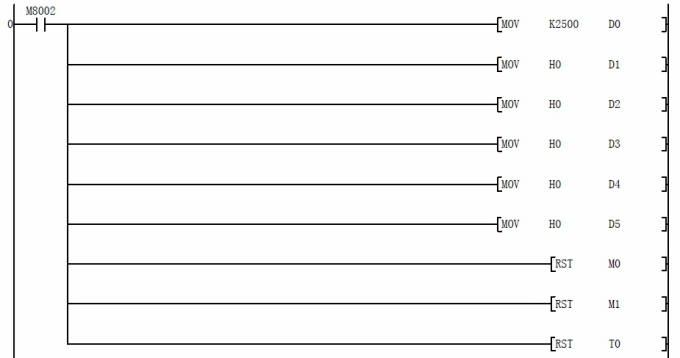 D5:寫頻率寄存器數據,先給 D0 預寫想要的頻率值后,然后按下 X3 即可把預想的頻率寫入變頻器,比如預想寫如 21.22HZ 的話,那么應該首先給 D0 賦值 K2122,然后按下 X3 即可寫入頻率