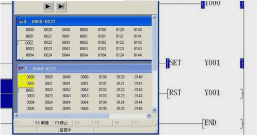 七、在監控對話框中調出X和Y監控頁面,點擊軟元件—位軟元件窗口。這時可以點擊X0和X2,雙擊兩次X0相當于按鈕功能,這時發現Y0已經保持輸出狀態,再次按X1解除。按下X2會使Y1保持輸出,按下X3才能復位Y1。